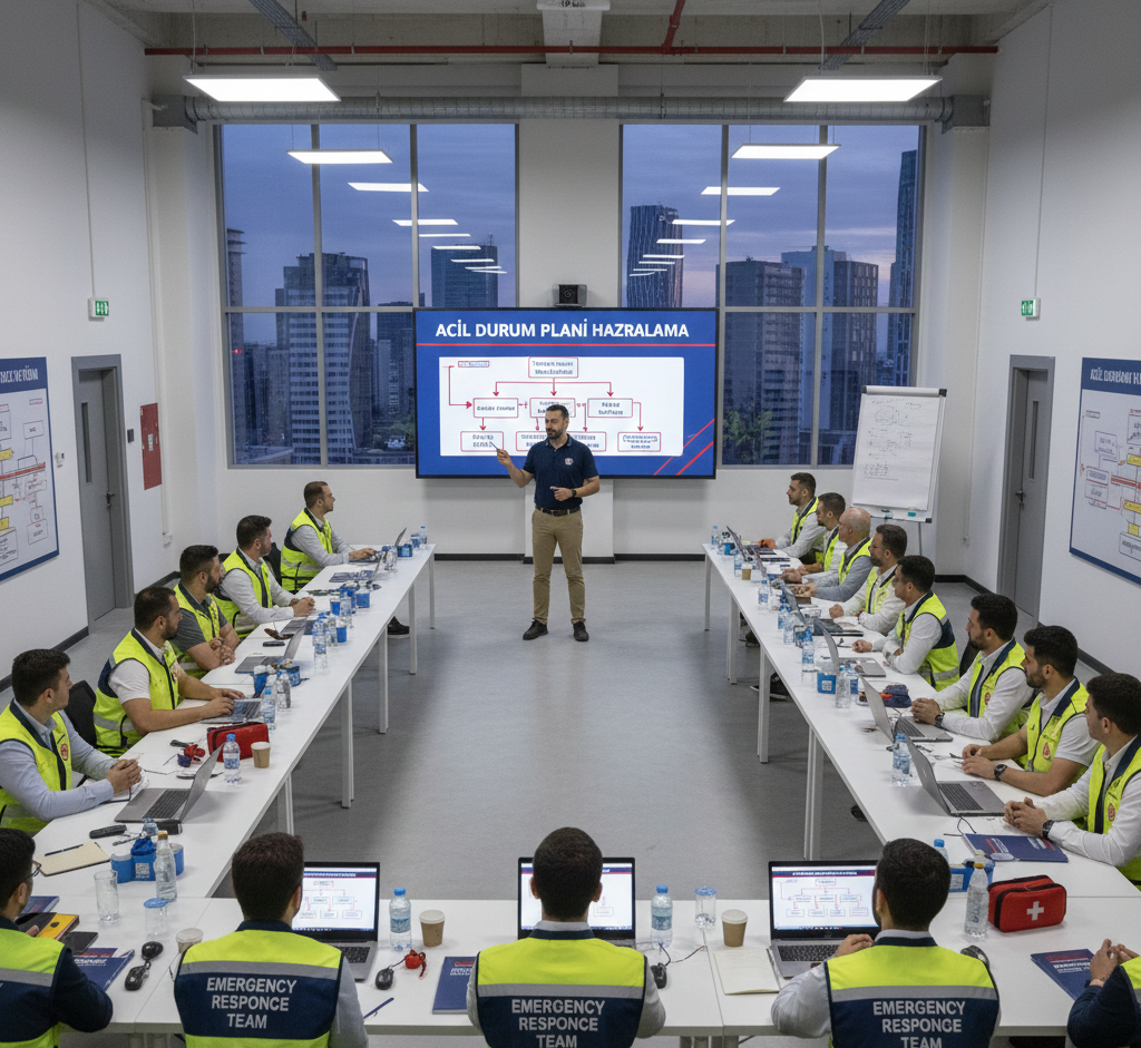 Acil durum planı, tatbikatlar ve ekiplerin oluşturulması.